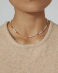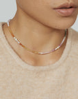 A light-catching mix of soft color and delicate texture, the Ella Necklace brings a fresh, modern take to everyday layering. Faceted gemstone beads in pastel tones are interspersed with luminous freshwater pearls, creating a subtle gradient that feels effortless and polished. Finished with a gold-toned closure and signature tassel detail, it adds a refined pop of color to any look.