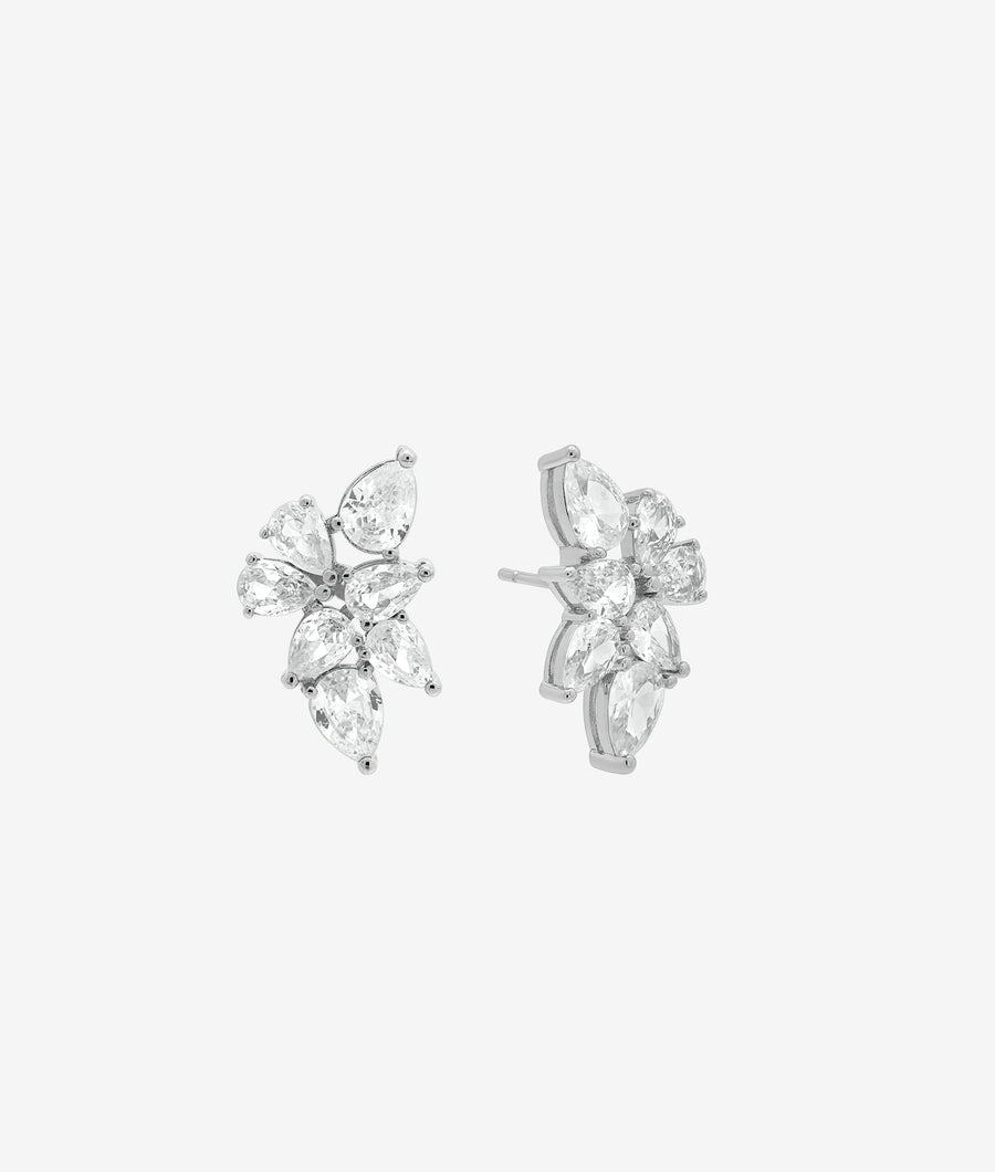 Inspired by organic form and delicate symmetry, the Petite Fallen Leaf Stud is crafted with marquise and pear-cut stones arranged in a soft, sculptural cluster. Its refined scale and timeless elegance make it ideal for weddings, evening wear, or everyday sparkle.
